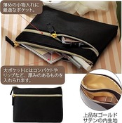 ゴールドファスナーがアクセント。かさばらずに携帯できるスリムポーチです。