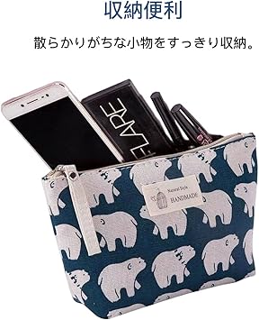 ・【可愛いデザイン】しろくまなどのキャラクターで満ち溢れた可愛いデザインの化粧ポーチ。裏地には異なる絵柄がある上、チャームもかわいくておしゃれです。