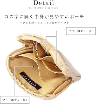 ・エッフェル搭のゴールドパーツが キラリと輝くミニポーチ しっとりした上品な艶があるPUレザーを使用。 エッフェル搭のゴールドパーツと、ファスナーの タッセルチャームがポイントのフラットミニポーチ。