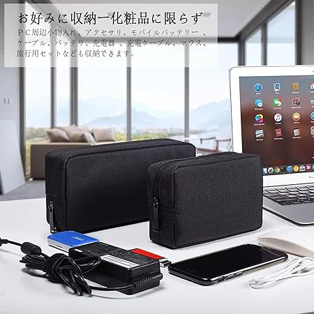 ・【多機能】旅行に最適です。ポーチを開けて、中に何かがあるかを見てください。残したものを防ぐためです。お好みに収納ー化粧品に限らず、PC周辺小物入れ、アクセサリ、モバイルバッテリー 、ケーブル、バッテリ、充電器 、充電ケーブル、マウス、旅行用セットなども収納できます。
