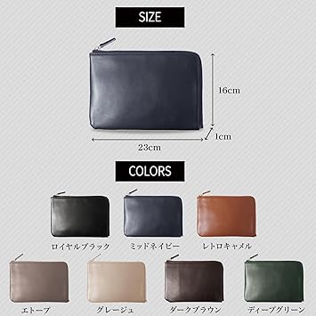 ・【 使い方はあなた次第 】 ポーチのサイズは23 × 16㎝となっているので、小物ポーチとしてはもちろん、ミニクラッチバッグとして結婚式やデートで使用したり、旅行ポーチとして洗顔や歯ブラシを入れたり、カバンの中を整理するためのバッグインバッグとして使用したりと、あなただけの様々な使い方ができます。丁度いいサイズ感でどんな場面でも活躍すること間違いなしです。 【 厳選した本革素材 】 長くご愛用していただけるよう本革素材の最高級スムースレザーを使用しました。使えば使うほど手に馴染み、色合いも深くなっていく上質な本革ならではの味わいをお楽しみください。