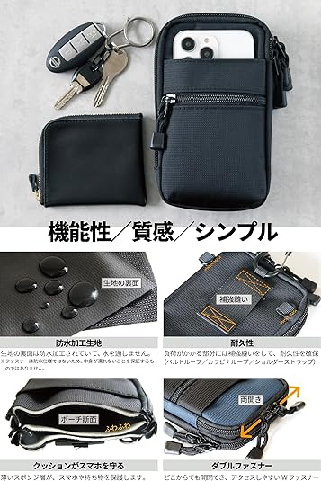 ・【4通りの使い方が便利 】 カラビナポーチ、ベルトポーチはもちろん、ショルダーポーチにも。ショルダーストラップを短く調節すると、ウエストポーチにすることも可能(着衣時の腰周り78cm以上必要)。服・季節に合わせて様々な使い方ができます リュックや大きめのバッグを持つ時も中をごそごそ探すストレスから解放ウォーキングや買い物など、最低限のものを入れてサッと身軽に出かけたいときにも最適。
