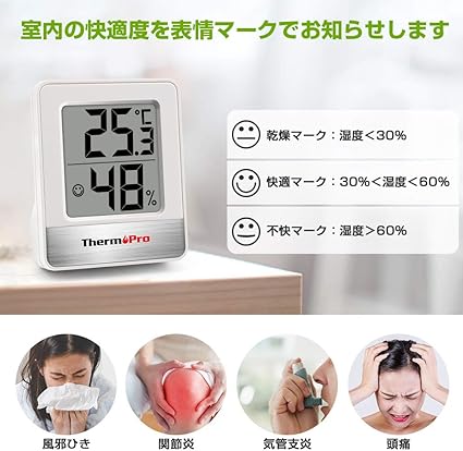 ThermoProサーモプロ 湿度計 温度計 温湿度計 湿度計室内 大画面 コンパクト 顔マーク 壁掛け 卓上スタンド マグネット TP-4
