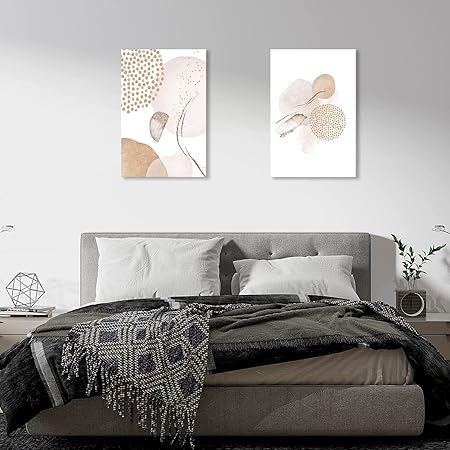 壁掛け 北欧 植物 木 ベージュ 抽象 絵画 2枚 額付き モノクロ アートポスター 部屋 装飾 壁絵 木枠付きの完成品 (30x40cm