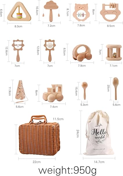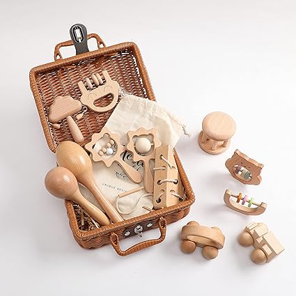 Promise Babe おもちゃ がらがら ラトル 天然木 出産祝い 豪華12点セット ガラガラ 赤ちゃん 木の揺れる音 子供 プレゼント