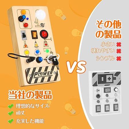 ・【ビジーボード 1 2 3 4 歳】 ビジーボードには、スイッチの色に合わせた電球など、複雑さの異なる8つのスイッチがある。スイッチが好きな幼児には、飽きのこない楽しいおもちゃです。注意:2*AAA電池が必要です。