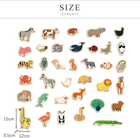 ・【2歳からの知育玩具として】【指先の発達】【言葉の習得】ピタッとくっつくマグネットの感覚は子供が大好き!指先の動きが上達してくる2歳頃のお子さまへマグネット遊びにおすすめです。自分でピースを手に取って目で動物を確認する動きは”手と目の協応”と言われ、幼児期の脳の発達にとても大切な要素です。磁石がくっついたり外れたりする感覚は子供にとって新しい発見になります。また、動物の名前を一緒にお話しする中で言語の習得にもつながります。