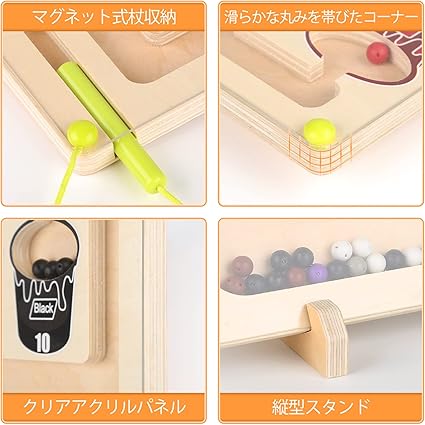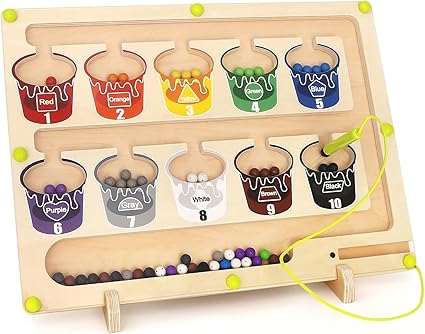 ・モンテッソーリ 玩具:色を探したり、数を数えるためのマグネット式幼児用ゲーム。木のおもちゃの迷路には、1~10の数字を表す10個の「ペイントポット」と、お子様が数を数えられるように10色の明るい色の65個のマグネットビーズが組み込まれています。3、4 5 6 7歳のお子様への知育おもちゃ的な贈り物として最適です。