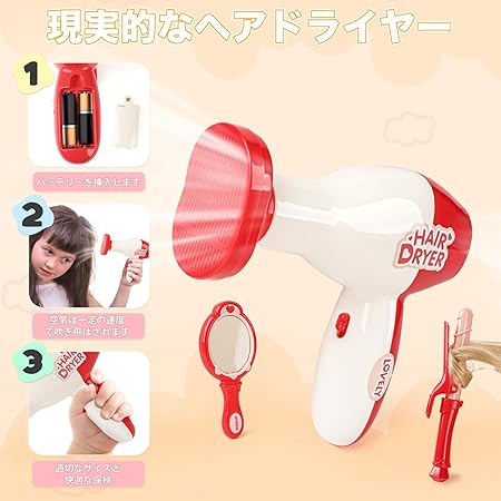 ・【28 IN 1 メイクセット おもちゃ 女の子】このロールプレイおもちゃは、ヘアドライヤー、鏡、ネックレスなどを含む28個のアクセサリーで構成されています。