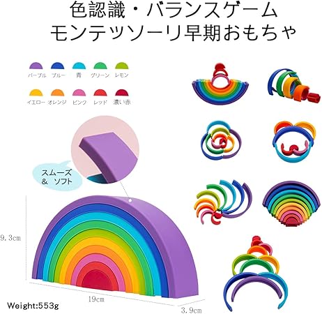 Mamimami Home 積み木 10層 虹の積み木 シリコン製 虹色トンネル アーチレインボー スタッキングゲーム モンテッソーリ 知育