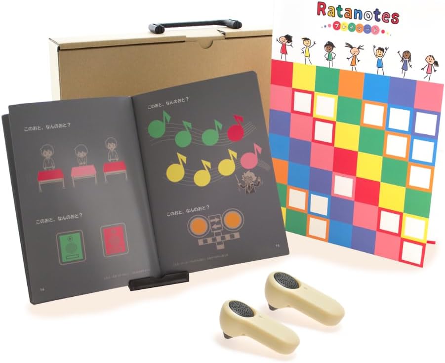 ・Ratatoneは、パズルのような知育おもちゃや、 絵本とは異なった考え方から生まれた聴覚から創造力を育む知育楽器です。