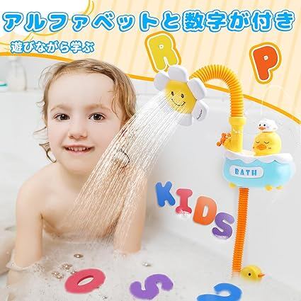 ・【色々な遊び方】このセットには、花のシャワーヘッド、数字とアルファベット、収納袋が含まれています。シャワーヘッドには3つの出水モードがあり、お風呂がより楽しくなり、お子様が入浴を好きになります。数字やアルファベットは、お子様がお風呂で英語を学ぶのに役立ちます。学びながら遊ぶことができます。