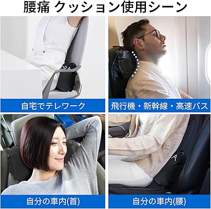 ・【 腰枕 飛行機&一枕多用】お客様の要求を満たすために、当社は最新版の腰枕を開発いたしました。一つの腰枕は様々なシーンに使うことができて、オフィスで仕事をする時、正しい座り方を取り戻し、腰椎を保護し、疲労を緩和できます。長距離の飛行時に持ち歩き首枕としても使えます。