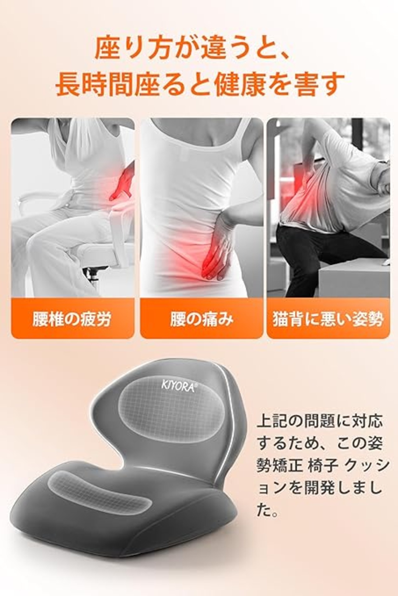 椅子 クッション kiyora 腰痛 クッション 座ぶとん姿勢矯正 痔 クッション 座布団 ランバーサポート 一体方 骨盤から腰をサポート