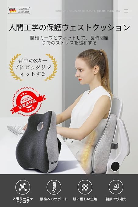 【理学療法士監修】Meikaso 腰クッション ランバーサポート 椅子 車用 クッション ウェストクッション 中空背当て 運転クッション 腰