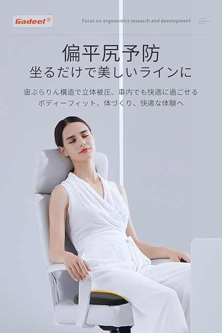 ・【新型内凹ゲルクッション、体圧を分散】 Gadeelゲルクッションは、弧面設計を採用し、座り心地が弾性に富み、自然に足を支えて、足の圧力を分散し、足の不快感を軽減します。また、中央のくぼみの設計により、痔や男性の睾丸の不必要な圧迫を効果的に予防し、身体への負担を軽減し、座り姿勢の快適性を高め、血液循環に影響を与えません。
