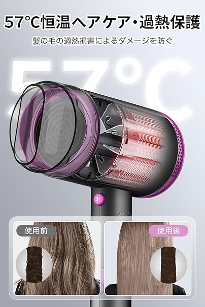 ・【1400W速乾性抜群】驚くほどの大風量で髪をより早く、 毎秒2.26m³(立法メートル)の大風量で髪の乾燥時間の短縮可能に。1400W大風量がある一方、電気の消費量が低くて、電気代が節約できます。