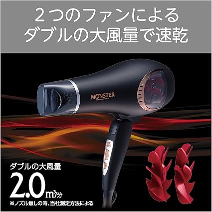 コイズミ(Koizumi) ヘアドライヤー モンスター 大風量 速乾 マイナスイオン ブラック KHD-W740/K