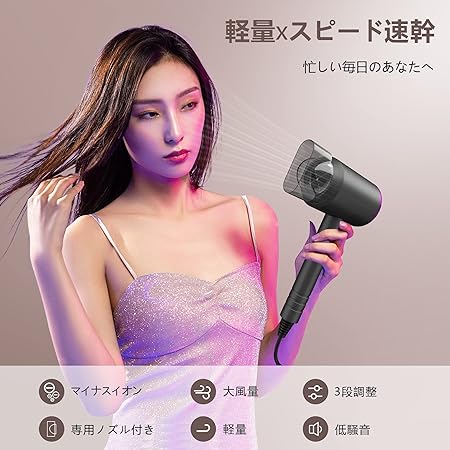 ・【髪にもっと潤わせる】高濃度マイナスイオン発生装置が搭載されております。2000万マイナスイオン噴出でき、静電気によるキューティクルが開きやすことも防げます。長く使うとヘアの光沢感と柔らか感をアップできます。