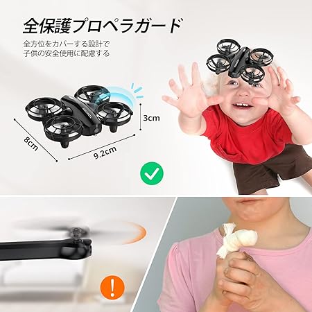 ・【安心な全保護プロペラガード付き】 360°保護プロペラガード付きのこちらのドローンは安全性と耐久性を持っていて、衝撃を受けた時に本体をよく保護する同時に、こどもがドローンのプロペラに触れて怪我をすることも避けられます。リモコンは人間工学に基づいて設計されたもので、人の使用習慣に合わせます。