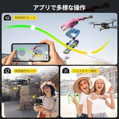 ・【多種機能&初心者に最適】当製品には、高度維持、ヘッドレスモード、3段階飛行速度、3Dプッリブなど、初心者向けの基本機能が備わっています。スマホと機体WIFIを接続すると、アプリで多様な機能が楽しめます。ジェスチャー撮影、体感操作、軌跡飛行など、両手を解放し、更に自由な状態でドローン空撮を操縦することができます。