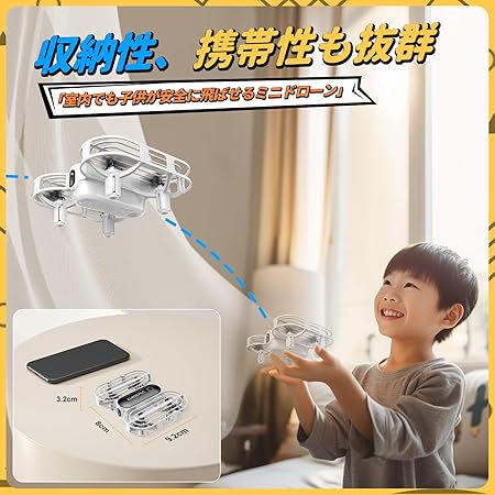 ・【全保護プロペラガード】:飛行中にお子様がプロペラで怪我をする心配がありません。墜落や高所から落下しても、機体を傷つけることなく、飛行の安全性を高めることができます。
