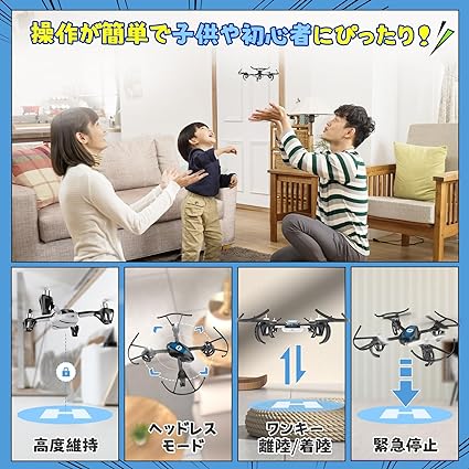 ・【子基本的な飛行機能が備える】緊急停止、3段階スピード切り替え、ヘッドレスモード、トリム調整、操縦モード1/2自由転換など、基本的なドローン機能を体験するとともに、3Dフリップのようなアクロバティックな動作も実現できます。クリスマスパーティーでドローンの一発芸で盛り上がりましょう!