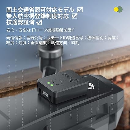 ・無人航空機登録制度対応 外付け型リモートID発信機・国土交通省 認可対応モデル 技適認証(電波法)済み