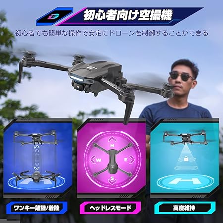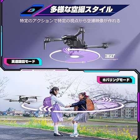 ・【初心者向け空撮機】高速旋回モード、ホバリングモードなどで、特定のアクションで特定の視点からつなめらかな空撮映像を作ることができます。ヘッドレスモード、高度維持などの機能で、ドローン操縦をより簡単にします。ドローン空撮にまだ慣れていない初心者でも普段は見ることのできない自由な視点で撮影することができます。