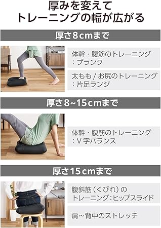 ・椅子や床に置いて座るだけなので、ご自宅やオフィスなどで日常生活に取り込みながら、無理なくバランス感覚やインナーマッスルを強化することができます。