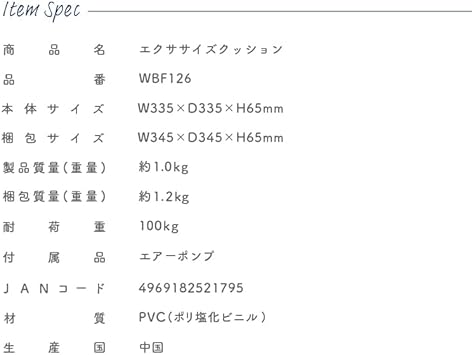 ・【商品仕様】本体サイズ:幅33.5×奥行33.5×高さ6.5cm/重量:1kg/耐荷重100kg/仕様:リバーシブル(突起/フラット)/付属品:エアーポンプ/トレーニングマニュアル付き/材質:PVC(ポリ塩化ビニル)/カラー:ブルー