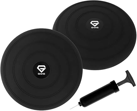 ・【セット内容】本体×2個、空気入れ×1個、説明書(トレーニング例付き) 【サイズ】直径(約)33cm 【重量】(約)950g 【材質】本体:PVC、空気入れ:PP ※説明書は高さ約6cmとご案内しておりますが、空気量によっては約7cmになります。