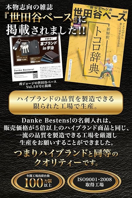 ・【商品詳細】◆ブランド名:Danke Bestens! ◆素材:牛本革(オイルレザー) ◆サイズ:11cm×8cm×1. 5cm ◆カラー:ブラック、ダークブラウン、ネイビー ◆ポケット数:4つ ◆用途:めいしいれ、カードケース