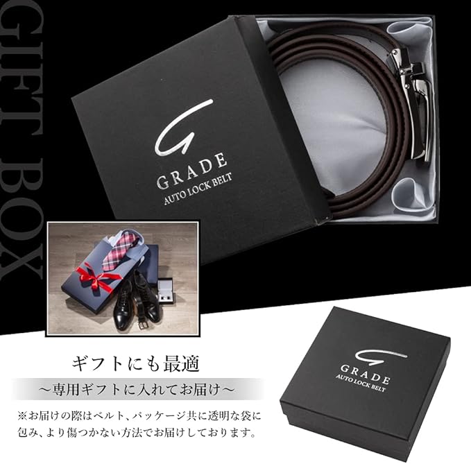 [GRADE] ベルト メンズ 本革 オートロック式 『本革で作られた本物の1本』 ビジネス カジュアル バックル取替可能 ベルト長さ調整可