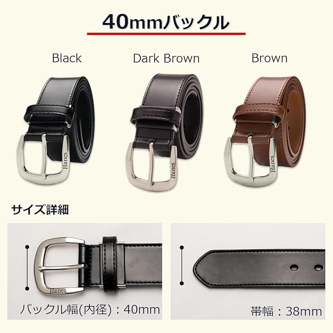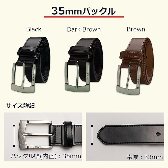 [ヘインズ] カジュアルベルト シンプル 丈夫な 牛革 30mm幅~40mm巾 スタンダード 定番 ウエストサイズ100cm対応 (ブラウン