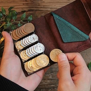 ・【小銭達が整列する、超個性的なコンパクト財布!】コインホルダーに、10,50,100円硬貨がそれぞれ6-8枚程度入ります。500円硬貨は5枚程度入ります。