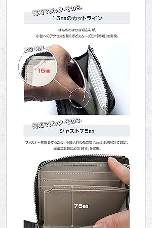 ・【時短構造】ファスナーを開くワンアクションのみで財布の中身に素早くアクセス。