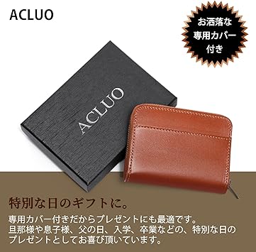 ACLUO 栃木レザー 小銭入れ メンズ コンパクト 財布 YKKファスナー 本革 コインケース 小型 カードケース 紳士 こぜにいれ ブラ