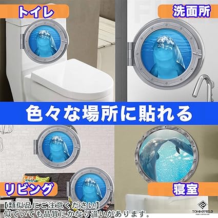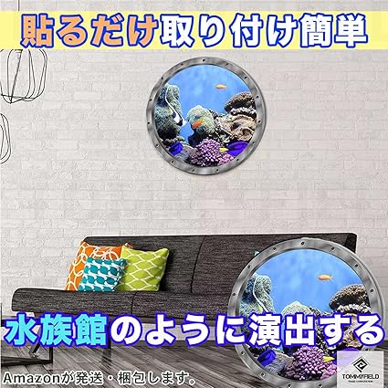 TOMMYFIELD ウォールステッカー 窓 海 イルカ 海の中 大きい 魚 水族館 海中 4個セット