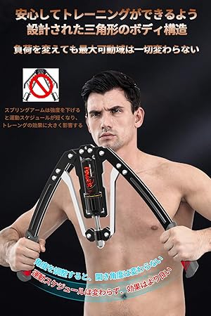 ・【安全な三角ボディ構造】耐久性と安全性が良い高密度二重鋼管を採用している大胸筋トレーニング器具は変形や壊れがにくいです。また、安全な三角ボディのデザインはスプリング式のアームバーよりもっと頑丈で安定に筋トレーニングできます。お仕事が忙しい方でも自宅で本格的トレーニングができるだけでなく、ご家族の健康管理、基礎筋力アップにもお役立ていただけます。