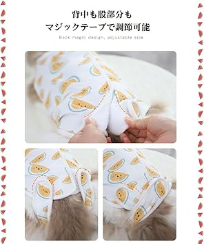 Liv Liberty 猫 術後服 メス マジックテープ 避妊手術 離乳 傷なめ防止 (スイカ, M)