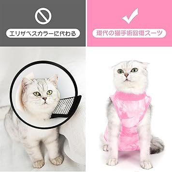 術後服 猫用 ペット術後ウェア 介護服 皮膚保護 不妊手術 傷口保護 避妊 傷舐め 引っ掻き防止 手術用 男の子 女の子 兼用 M ピンク