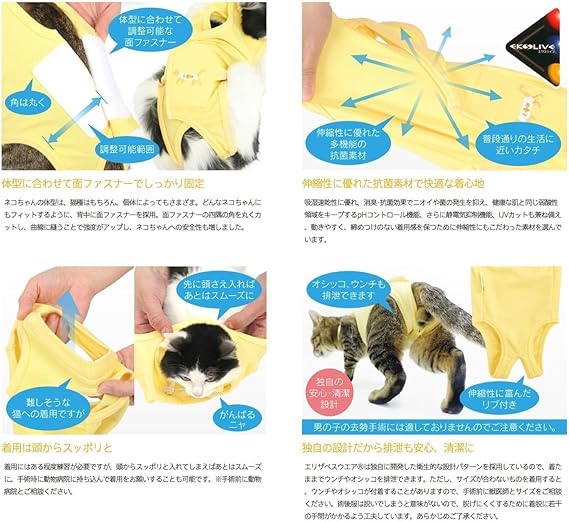 猫 男女兼用 術後服エリザベスウエア(R)8/イエロー C2L
