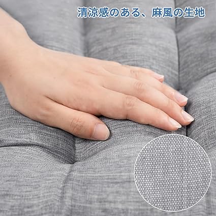 ・【清涼感のある、麻の生地】ポリエステル糸を織り上げ、麻の風合いを表現。質感・清涼感は本物の麻のまま、麻より使いやすく、クッションに適した素材にしました。 特徴:麻より柔らかいのでチクチクしない。シワになりにくい。洗濯機で気兼ねなく洗える。色あせ・色落ちが少ない。