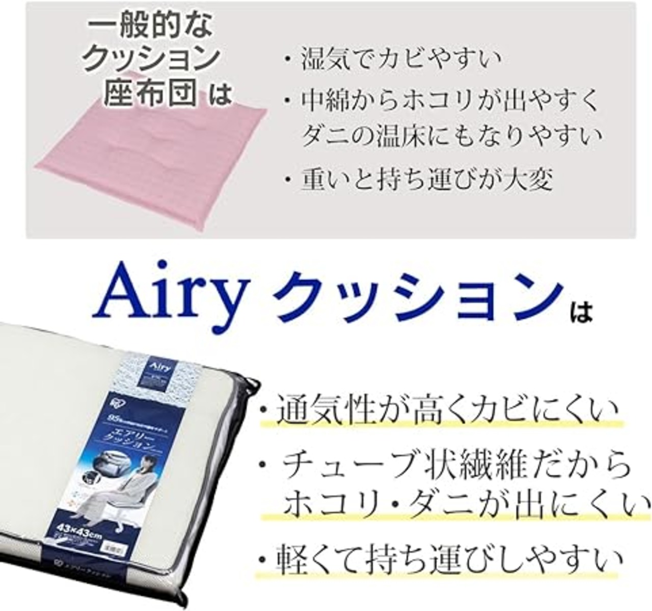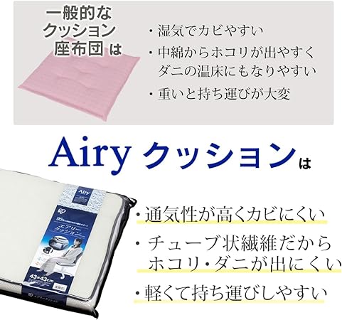 アイリスオーヤマ(IRIS OHYAMA) クッション エアリーシートクッション 抗菌 防臭 丸ごと洗える 長時間使用でも疲れにくい ムレに