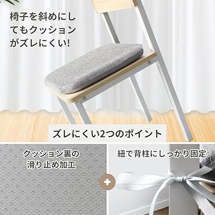・クッション裏は滑り止め付きで、椅子を斜めにしてもズレない。