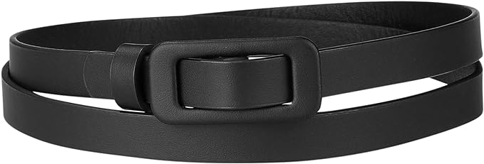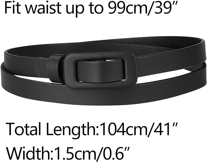 [Allegra K] 細ベルト ウエストマーク 細幅 穴なし ウエストベルト 長方形バックル カジュアル レディース