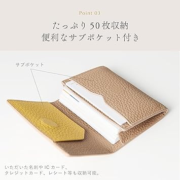 ・【 こだわり 】厳選された上質な本革を使用し、手触りと風合いにこだわりました。コンパクトなサイズながら、名刺を40枚以上収納可能で大容量設計。