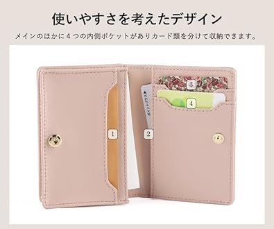 ・マチ付きのメイン収納で名刺が約50枚ほど入ります。 4つの内側ポケットもありカード類を分けて収納できます。 便利な外側ポケットも♪ 手に馴染むちょうどいいサイズ感で、 ポケットやミニバッグにも入ります◎