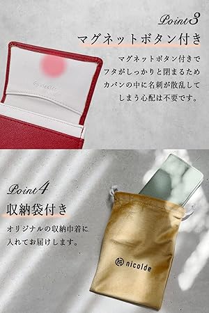 ・【 マグネットボタン付き 】 フタの部分にはマグネットボタンがついているため、カバンの中に収納する際も、中の名刺が散乱する心配は不要です。使い勝手にも優れたアイテムですのでぜひこの機会にご活用ください♪